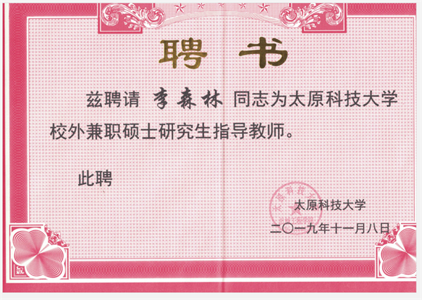 熱烈祝賀我司工程師李森林受聘為燕山大學(xué)、太原科技大學(xué)碩士生校外指導(dǎo)教師。